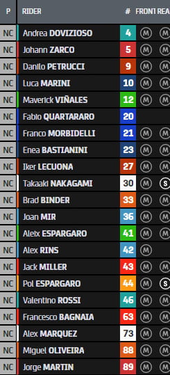 Morbidelli, Miller, Pol Espargaro (Voir ici)
