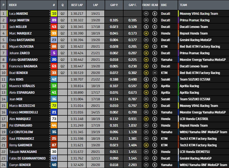 Résultats de la FP2 du Grand Prix MotoGP de la Communauté Valencienne sur le circuit Ricardo Tormo :