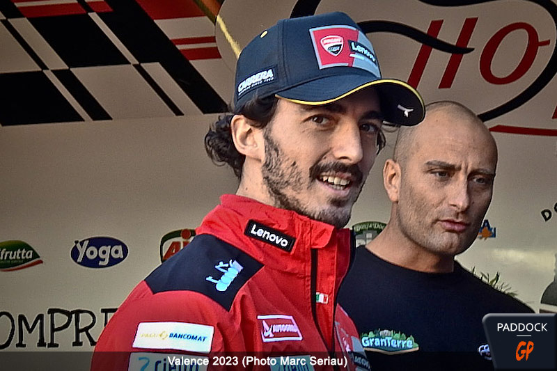 Juste quelques photos sans prétention prises entre deux interviews et deux débriefings pour illustrer pêle-mêle les principaux sujets qui circulent dans le paddock du Grand Prix de la Communauté Valencienne, dernière épreuve de la saison MotoGP 2023 : l’avenir de Fabio Di Giannantonio, le nouvel asphalte, l’arrivée de Pedro Acosta chez les grands, un brin de sérénité trouvée chez Johann Zarco et Fabio Quartararo, les futurs performances de Marc Marquez aux côtés de son frère et la dernière course des Dunlop…