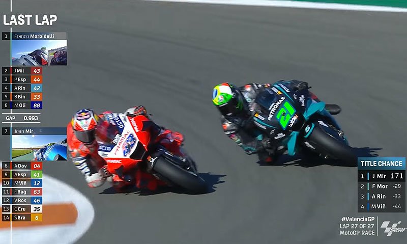 « Propre et sportif » a été le commentaire commun de Franco Morbidelli et Jack Miller à l’issue de cet affrontement pour décider du vainqueur du Grand Prix de la communauté de Valence, et, l’Australien a raison; cela aurait forcément plus au public s’il avait été présent.