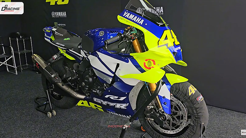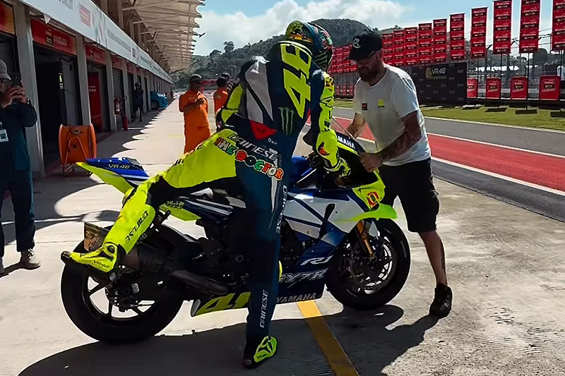 Dans ce cadre, « Vale » n’était pas seulement présent comme ambassadeur Yamaha, mentor ou figure d’inspiration. Profitant d’un créneau libre dans son agenda, le nonuple champion du monde s’est élancé lui-même sur la piste, mais évidemment pas au guidon d’une MotoGP : c’est sur une Yamaha R1 GYTR qu’il a bouclé plusieurs sessions alors que les pilotes MotoGP, règlement oblige, ont dû se contenter de simples des Ducati Panigale V4, Aprilia RSV4 1100 et Honda CBR 1000RR selon leur employeur.