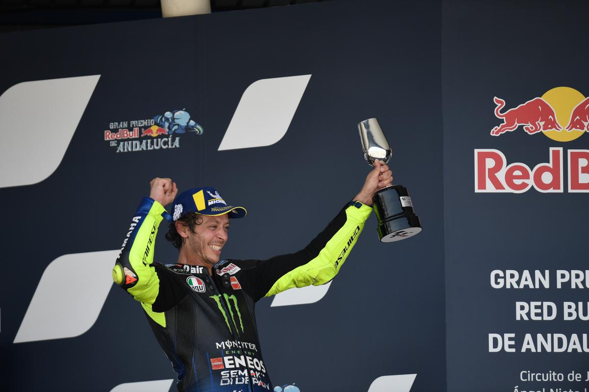 En prenant la troisième place du second rendez-vous organisé à Jerez qui était aussi le deuxième meeting de la saison 2020 de MotoGP, Valentino Rossi, à 41 ans et 161 jours, est devenu le premier pilote âgé de 41 ans ou plus à monter sur le podium de la catégorie reine des Grands Prix, depuis le retour de Jack Findlay en Autriche 1977 (42 ans et 85 jours).