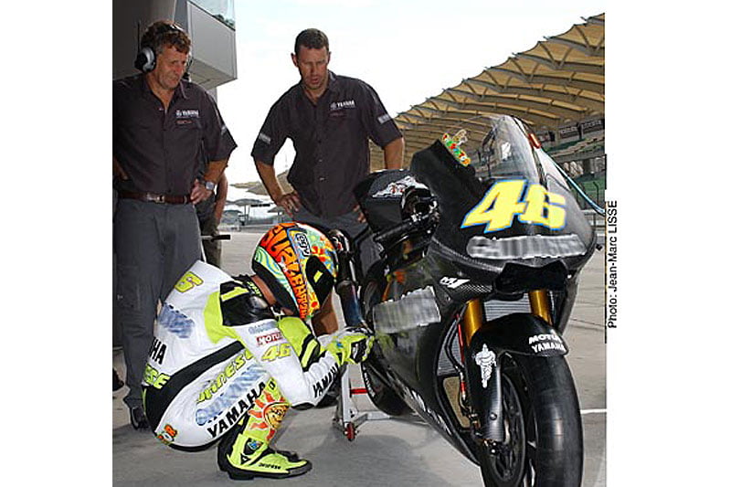 Le 23 janvier 2004, la veille des trois jours d’essais à Sepang en Malaisie, Valentino Rossi avait déclaré: « Cela fait plus de deux mois que je n’ai pas piloté une moto. Sachant que tout est nouveau, je vais presque repartir de zéro. Il me faudra une journée pour me réhabituer au pilotage, pour apprécier la vitesse et les distances de freinage. Évidemment la moto sera différente de celle à laquelle j’étais habitué. Gagner dès la première année sera certainement difficile. Il faut du temps pour être compétitif et gagner des courses. Nous allons essayer d’être au meilleur niveau pour la mi-saison et puis nous essaierons de gagner des courses. Mon objectif principal sera de comprendre la moto et de transmettre un maximum d’informations aux ingénieurs. En 2002, la M1 était plus ou moins au même niveau que la Honda, supérieure à certains niveaux et inférieure à d’autres. Pendant les essais hivernaux de l’an dernier entre 2002 et 2003, Honda a fait un grand pas en avant et Yamaha n’a pas semblé en mesure de se mettre au niveau. (Pour Welkom) cela dépendra du déroulement de nos essais et de la réactivité de Yamaha par rapport aux modifications potentielles. Bien que nous ne puissions pas forcément prétendre à la victoire, nous espérons ne pas être trop loin. «