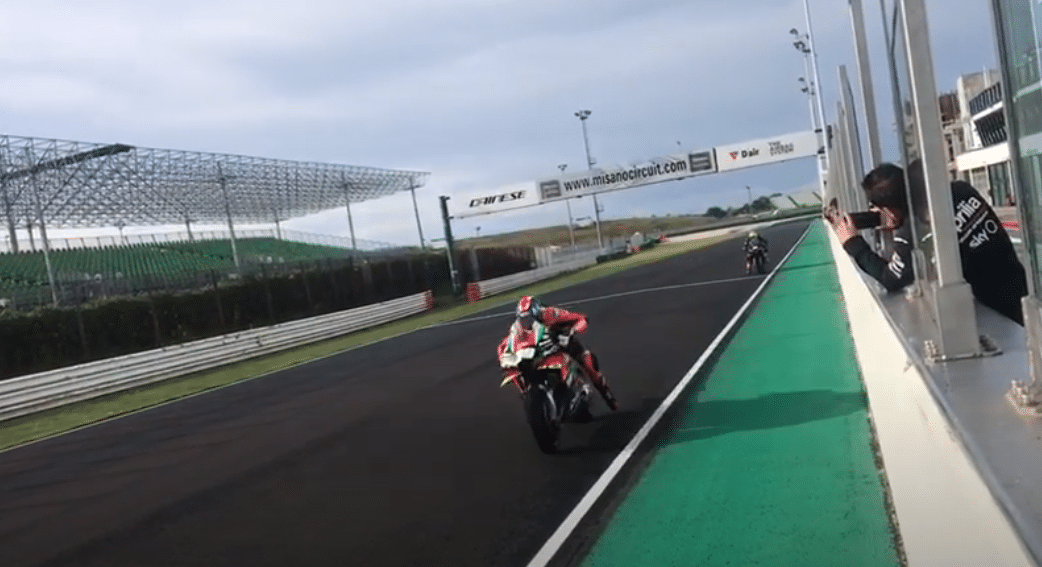 Après KTM au Red Bull Ring, l’usine Aprilia s’est déconfiné en prenant possession du tracé de Misano. Certes, Aleix Espargaró était absent, mais ce dernier a profité de ces derniers jours de calme pour renouveler son bail avec la RS-GP jusqu’en 2022. Une nouvelle moto qui retrouvé le grand air et ses rugissements sont un vrai plaisir à écouter…