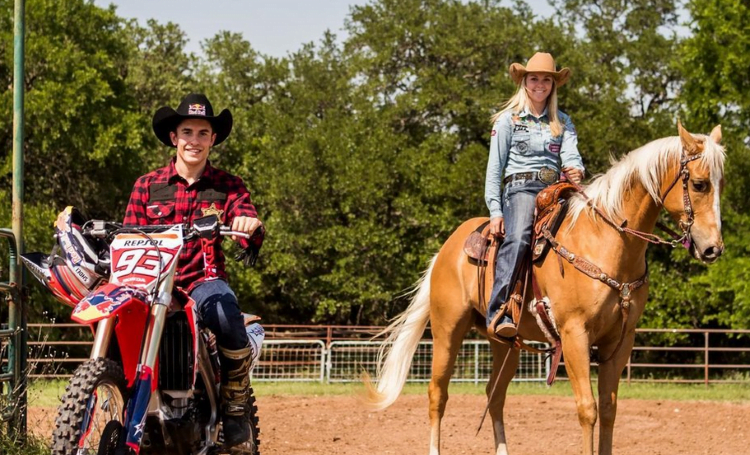 Et le résultat le voilà, en images qui bougent. Le challenger de la championne, du nom de Jackie Ganter, était équipé d’une Honda CRF450 de 60 canassons. Et le spectacle vaut le détour, dans un ranch qui n’est pas celui de Tavullia. Le duo a apparemment apprécié l’expérience. Le couple de l’année ?