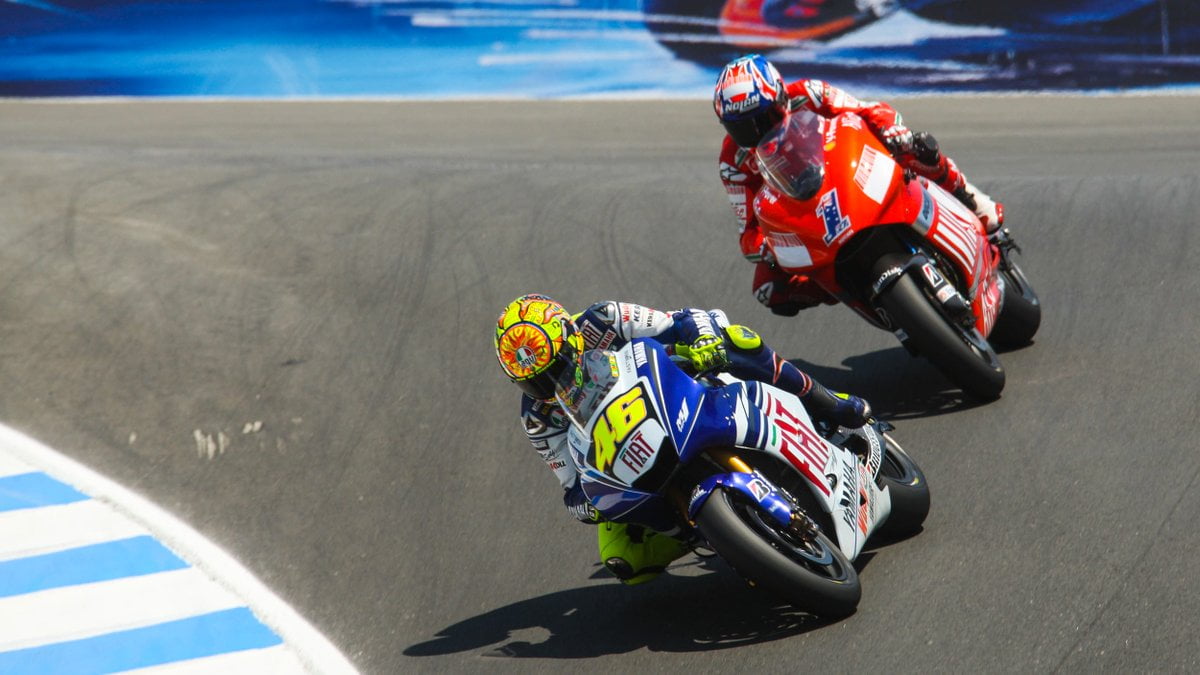 Laguna Seca, juillet 2008. Entre Casey Stoner officiel Ducati, Champion du Monde en titre, et Valentino Rossi, fer de lance Yamaha qui découvrait le jeune Jorge Lorenzo dans son box, les choses étaient un peu tendues. Ce Grand Prix allait faire passer cette rivalité dans une autre dimension. Et c’est une manœuvre osée qui allait tout faire chavirer… Le Doctor et l’Australien s’en souviennent encore.