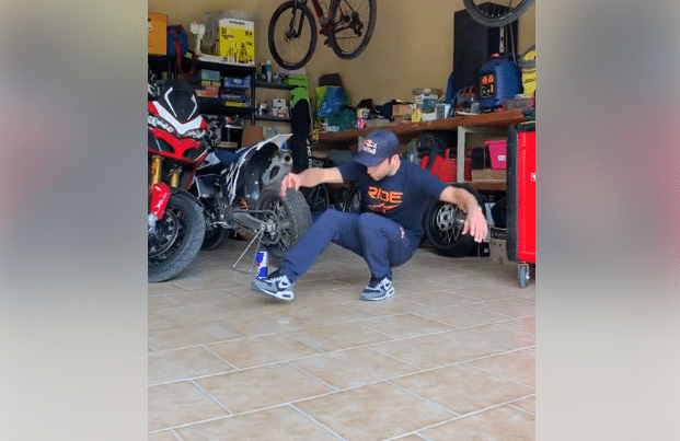Le confinement, ce n’est pas le pied, mais il permet de découvrir des ressources insoupçonnées de l’homme pour y faire face. La preuve avec Johann Zarco qui poursuit son entraînement physique de façon originale avec une partenaire non moins insolite : une canette. Celle-ci a vocation à donner des ailes, ce qui est pour le moins une provocation en cette période où il ne faut pas les déployer pour mieux rester dans ses appartements. Enfin, après les pompes, voici l’exercice d’équilibre distillé par le Français…
