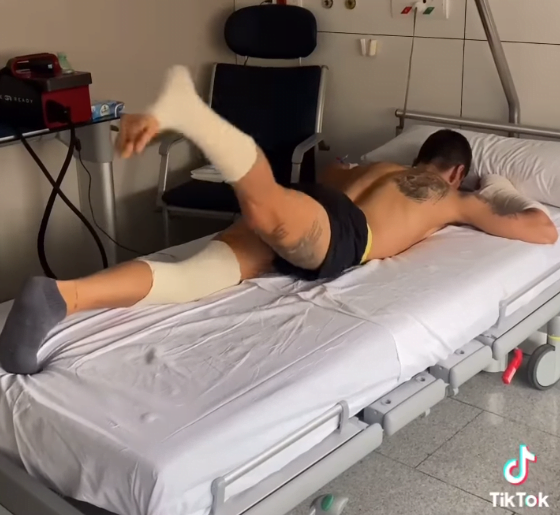 Jorge Martin a dû rester à l’hôpital Dexeus de Barcelone pour un total de 72 heures d’observation après les trois chirurgies pratiquées à la main droite, à la cheville droite et au tibia gauche mercredi après-midi. Mais cela n’empêche pas le pilote Pramac de commencer sa rééducation depuis son lit de souffrance.