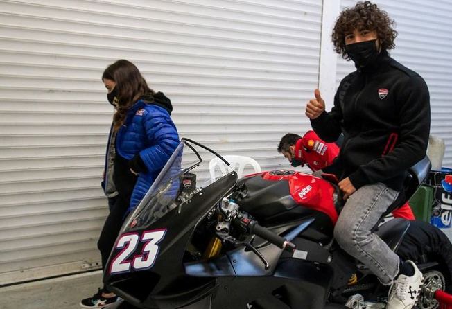Le temps n’a pas été hélas vraiment clément, ce qui est plus gênant pour les collègues du WSBK qui, eux, sont en pleine préparation de leur saison 2021. Jack Miller (Ducati Lenovo Team), Francesco Bagnaia (Ducati Lenovo Team), Johann Zarco (Pramac Racing), Jorge Martin (Pramac Racing), Enea Bastianini (Avintia Esponsorama Racing) et Luca Marini (SKY VR46 Avintia Team) ont tout de même attendu une piste sèche ce jeudi après-midi pour sortir leur Panigale V4.