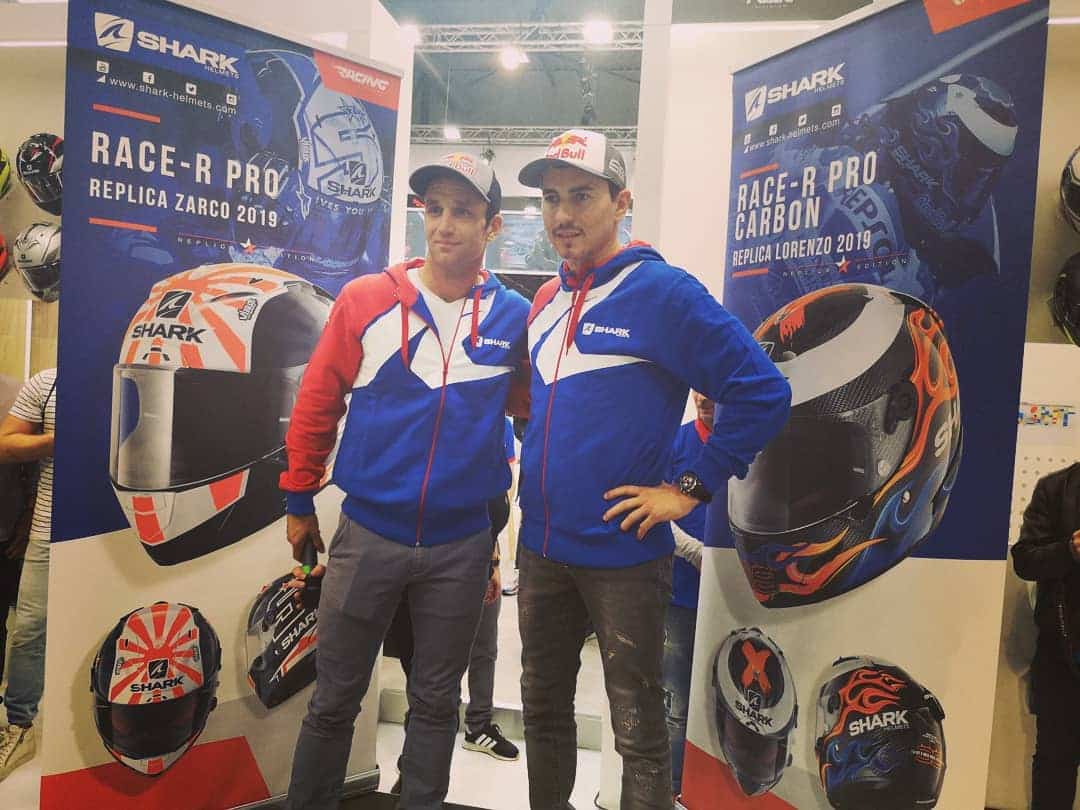 Johann Zarco et Jorge Lorenzo vont connaître les semaines les plus décisives de leur prolifique carrière. De la tournure des événements, ces prochains jours, dépendra en effet de la suite de leur parcours en Grand Prix. Pour tout dire, la décision de l’un influera sur l’avenir de l’autre et un seul sera de la grille de départ 2020 du MotoGP, en tant que titulaire. Sur une Honda… Deux pilotes en concurrence pour la survie qui se sont croisés au dernier Salon de Milan sur le stand Shark, avec qui ils sont en contrat pour leur équipement…