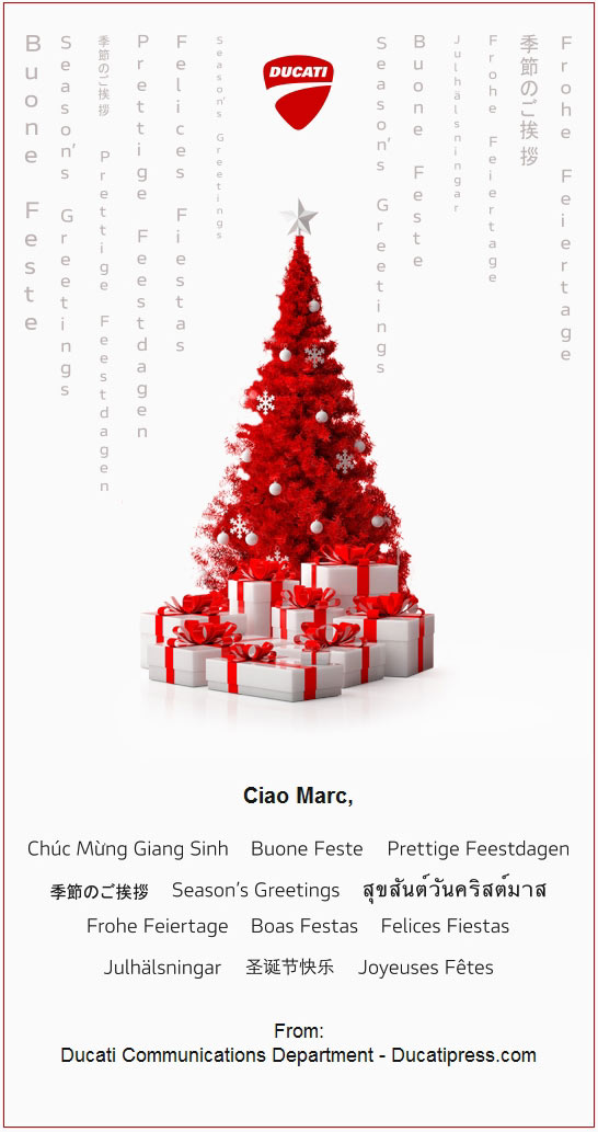 Moto GP Publié le 22 décembre 2017 • 11:00 par Paddock GP MotoGP Vœux 2018 : HRC et Ducati A la suite de ceux des teams Monster Yamaha Tech3 (voir ici), Movistar Yamaha MotoGP (voir ici), LCR Honda MotoGP (voir ici) et Aspar (voir ici), HRC et Ducati vous souhaitent de joyeuses fêtes et une bonne année 2018…