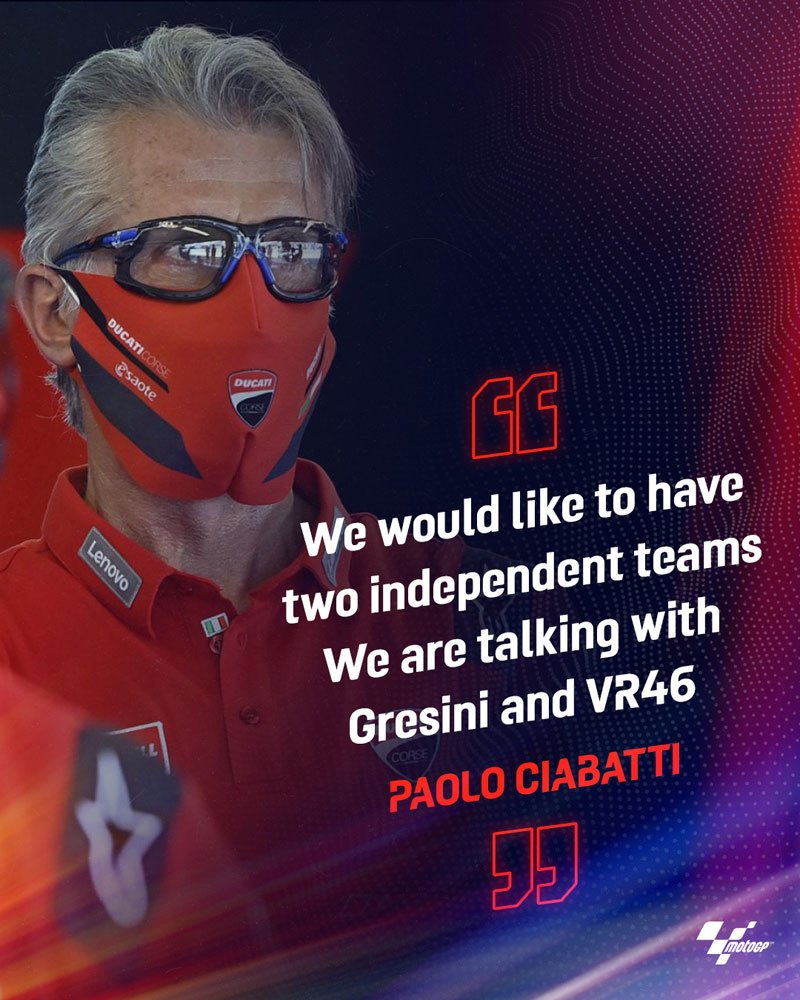 D’ailleurs, le directeur sportif Paolo Ciabatti ne le nie pas : « ce n’est un secret pour personne que nous parlons avec le VR46. Nous travaillons depuis plus d’un mois maintenant pour évaluer cette possibilité. Il me semble qu’il y a toutes les conditions pour pouvoir penser à une future collaboration. Voyons si nous pourrons matérialiser tout ça dans les semaines à venir. Ce serait certainement une très belle chose » dit Ciabatti.