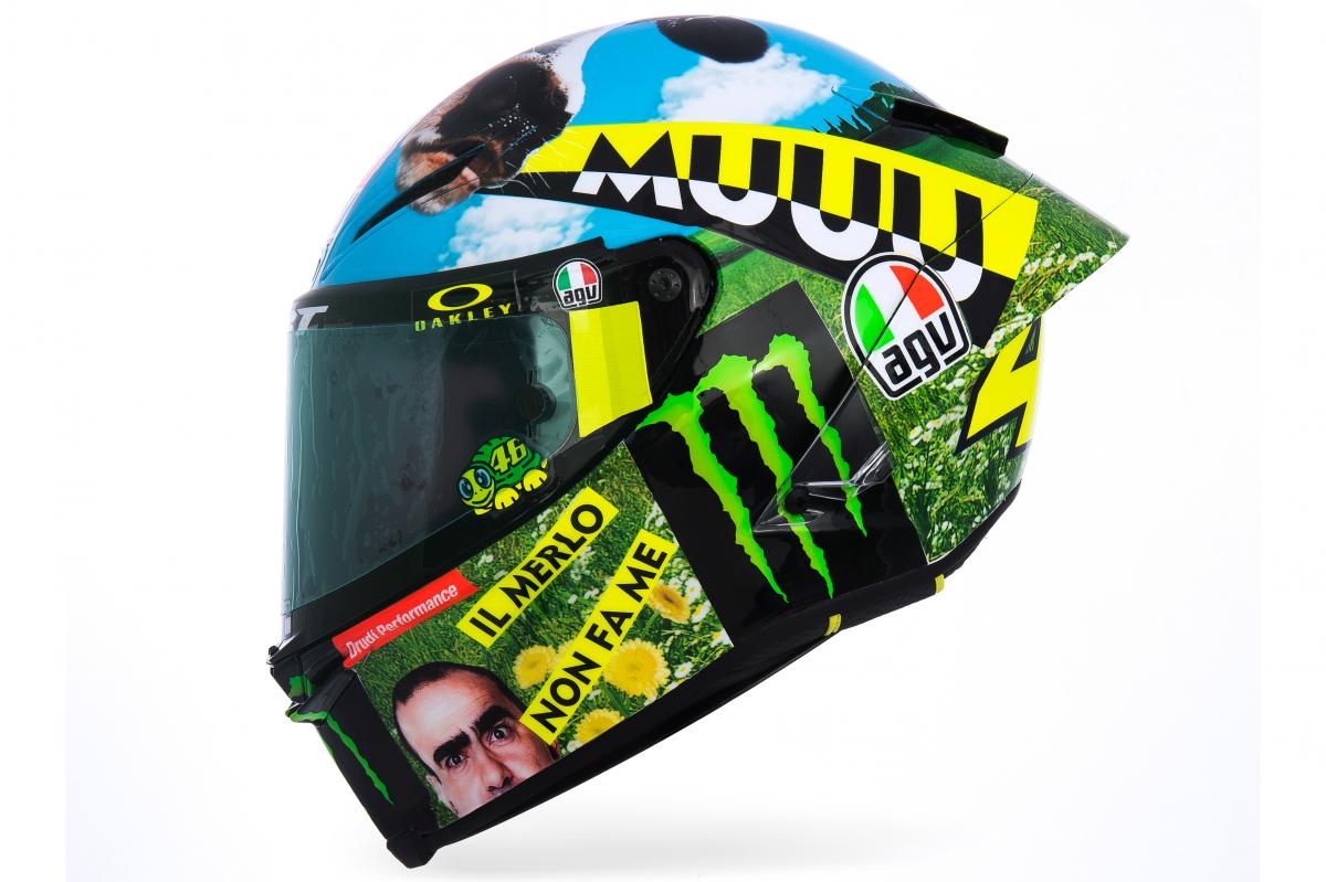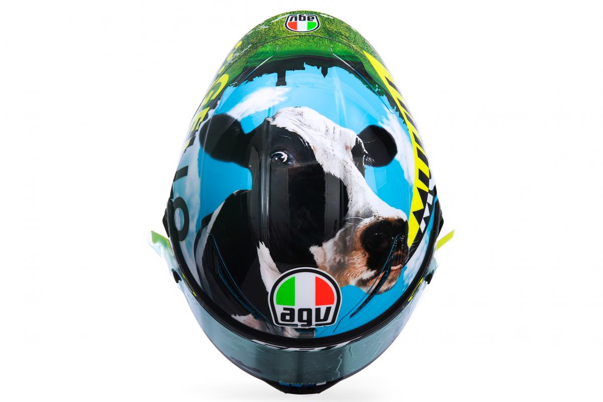 Incontestablement, le meuglement de la vache est à l’honneur pour cette édition 2021 de la décoration spéciale Mugello du casque de Valentino Rossi !