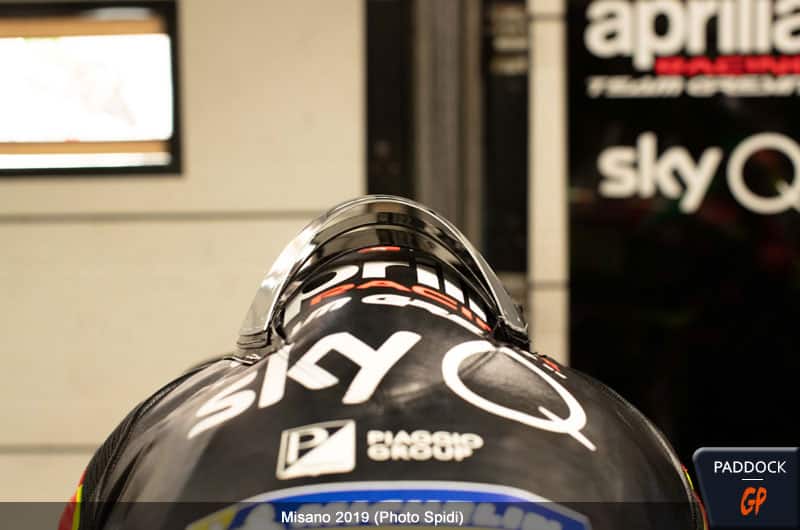 En effet, à moto égale, le pilote italien rend toujours quelques kilomètres/heure à son coéquipier espagnol chez Aprilia, et l’étude des datas a montré que cela provenait de l’aérodynamique au niveau de la zone comprise entre le casque et le profilage de la combinaison.