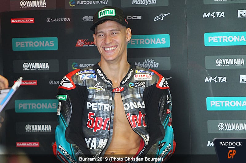 Lin Jarvis: « Nous sommes très heureux que Fabio rejoigne le team MotoGP Yamaha Factory Racing pour 2021 et 2022. Ses résultats lors de sa première année en MotoGP ont été sensationnels. Ses 6 pole positions et les 7 podiums de la saison 2019 ont été un signe évident de son brio et de ses talents de pilote exceptionnel. L’inviter à rejoindre le Team Yamaha Factory Racing après avoir terminé son contrat avec PETRONAS Yamaha Sepang Racing Team était une étape logique.