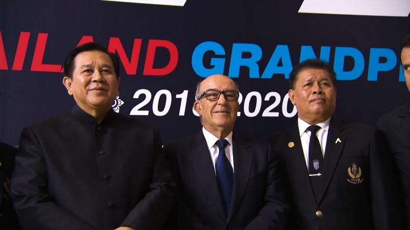 Carmelo Ezpeleta, CEO de Dorna Sports : « Aujourd’hui, l’Autorité des Sports de la Thaïlande et Dorna Sports ont signé un contrat pour accueillir le Grand Prix de Thaïlande au circuit de Buriram de 2018 à 2020. La Thaïlande est une grande consommatrice de motos et ils sont heureux de profiter du MotoGP™ pour développer le tourisme du pays. Nous sommes fiers d’avoir conclu cet accord avec le gouvernement thaïlandais. Jusqu’à présent, les courses qui s’y sont déroulées étaient du Superbike — dont le contrat sera renouvelé dans un avenir proche — et nous voyons qu’il y a beaucoup d’attente. Le MotoGP™ a beaucoup d’intérêt pour la Thaïlande et il est certain que ce Grand Prix sera bénéfique pour tout le monde. Nous devons encore fixer quelques dates, mais le calendrier est finalisé et j’espère que nous pourrons annoncer prochainement une première ébauche du calendrier 2018. »