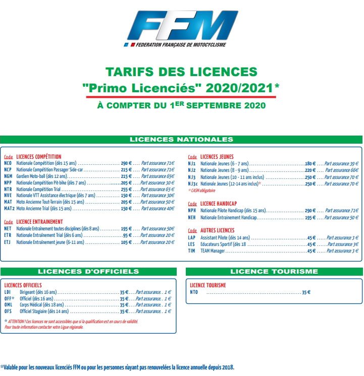 La Fédération Française de Motocyclisme renouvelle à partir de ce mardi 1er septembre son offre « Primo-licencié » permettant aux pratiquants de sport moto de bénéficier d’une licence annuelle compétition ou entraînement d’une validité de 16 mois, soit jusqu’à 4 mois offerts*.