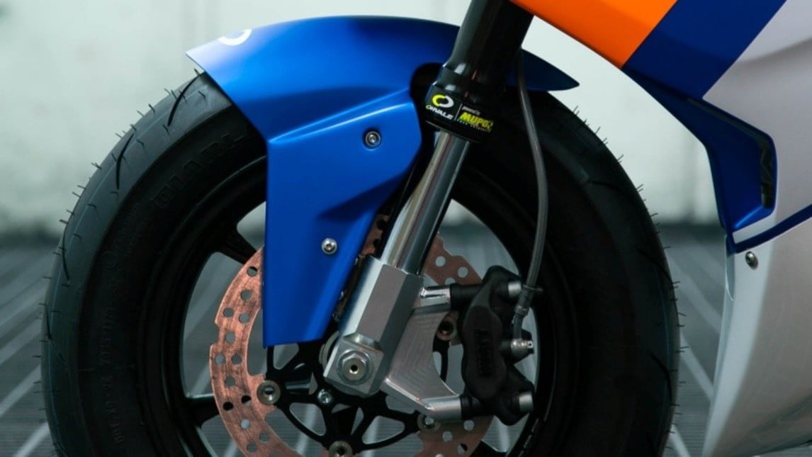 Sur les jantes en aluminium moulé de 12 ”, les pneus sont tubeless et les dimensions de 100/90 à l’avant et 120/80 à l’arrière.