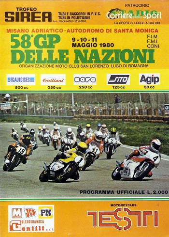 Le 24 mars 1974, Read gagne en 350 et 500 après les abandons de Agostini dans une course nationale, et Misano reçoit son premier Grand Prix en 1980, celui des Nations (58ème édition). Les vainqueurs se nomment alors Eugenio Lazzarini (50cc) sur Iprem, Pierpaolo Bianchi (125cc) sur MBA, Anton Mang (250cc) sur Krauser, Johnny Cecotto (350cc) sur Yamaha et Kenny Roberts sur Yamaha 500cc.