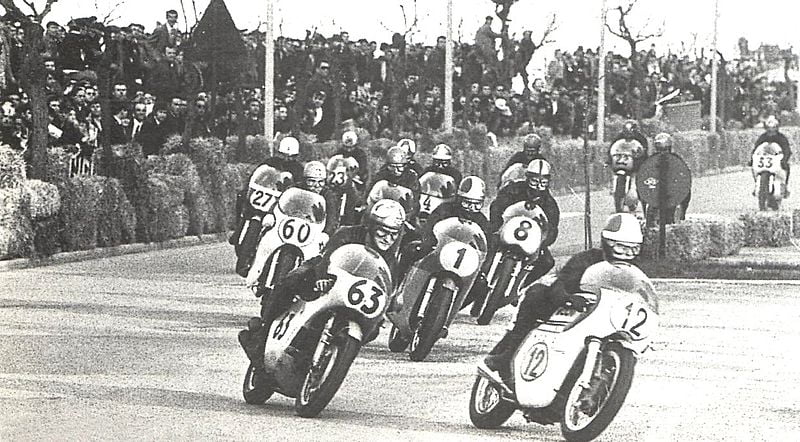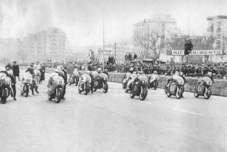 Les courses seront peu à peu regroupées officiellement dans le championnat italien en 1962, mais 1960 marque déjà un changement majeur avec l’ouverture de la Mototemporada Romagnola aux pilotes étrangers.