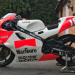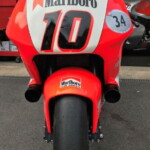 Les images, aussi bien en photo qu’en vidéo, sont totalement émotionnelles. A ses côtés, on y voit Kenny Roberts, également sur une YZR500 de l’équipe Marlboro, qui vient d’être mise en vente chez RMD Motors.