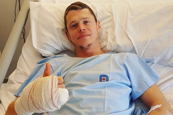 Nettoyage et couture des lacérations avec perte de peau du genou gauche. Un passage au scanner a confirmé que le tendon quadricipital était endommagé mais pas rompu.
