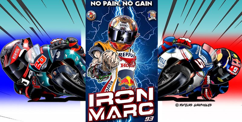 Après ses premiers travaux symbolisant notre soutien à nos pilotes français Fabio Quartararo et Johan Zarco, la victoire de Brad Binder et la victoire de Miguel Oliveira, Christophe, dont vous retrouverez le travail sur sa page Facebook Moteurs Graphiques, essaiera de rebondir sur l’actualité pour apporter une touche sympa au flux d’actualité que nous diffusons en permanence.