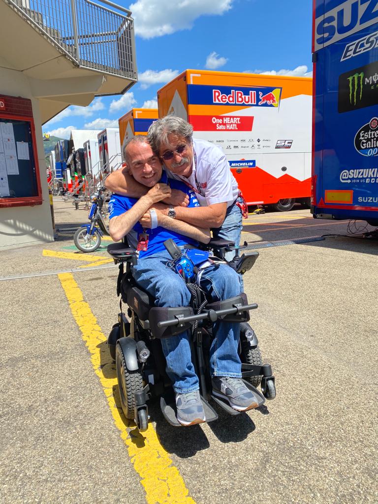 Dans toutes les interviews que j’ai faites au cours de ces années, j’ai toujours dit que j’avais eu de la chance, à cause de la façon dont j’ai perdu Marco, sans qu’il souffre, en faisant ce qu’il aimait le plus, sans vivre dans la douleur ou la souffrance, ou limité après la vie pleine d’expériences qu’il a eue. Parce qu’une chose est de naître dans une certaine condition, une autre est de s’adapter après un accident à une vie sans l’usage de ses bras et de ses jambes, et je pense qu’il serait difficile de l’accepter. Mais samedi, j’ai vu Elvio pour la première fois après l’accident de l’année dernière, avec son père Aligi Deganello qui le dorlotait, tous deux souriants.