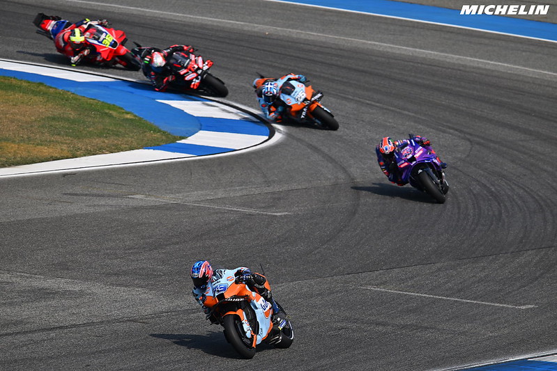 Troisièmement, la hiérarchie était tronquée. Vous me direz : « c’est la course », mais l’honnêteté intellectuelle m’oblige à vous rappeler que les résultats semblent peu significatifs. Fabio Di Giannantonio, avec une GP25, n’a pas pu jouer devant en raison d’une blessure qu’il traîne depuis les essais à Sepang. Ensuite, Jorge Martin était absent, et, malgré le talent du Champion du monde Moto2, je ne vois pas le « Martinator » finir derrière régulièrement à motos égales. D’autres ont connu d’évidents soucis pneumatiques, peut-être liés aux fortes chaleurs. Je pense à Fabio Quartararo, seulement 15e, Pedro Acosta, qui se plaignait d’une dégradation incompréhensible, et Brad Binder, qui avait ordre de ne pas pousser trop fort pour conserver la gomme.