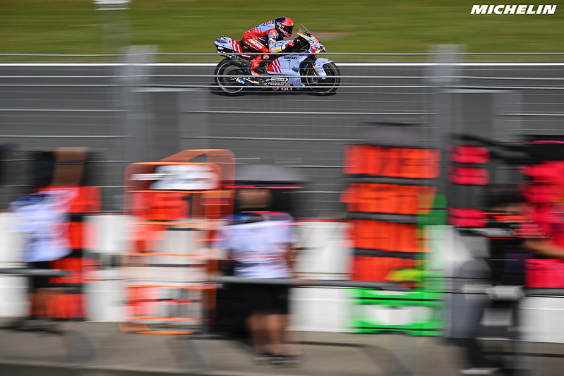 Marc Marquez a perdu très gros ce week-end. Une chute en Sprint et une dixième place le dimanche ne pèsent pas lourd face au perfect de Bagnaia. Photo : Michelin Motorsport