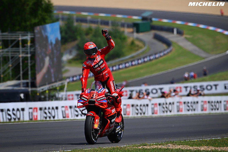 Marc Marquez a encore écrasé le week-end à Brno, à la surprise d’absolument personne. Lors du Sprint, il s’est même permis de perdre plus de deux secondes pour laisser passer Pedro Acosta, puis l’a redoublé quand il a voulu. Ce qu’il fait est unique, nous sommes en train de voir évoluer l’un des meilleurs pilotes de tous les temps, si ce n’est le meilleur. Cependant, une caractéristique inhérente à Marc Marquez n’est jamais discutée, alors, je vais m’y frotter aujourd’hui. Avant cela, rapide retour sur son week-end et ses deux victoires.