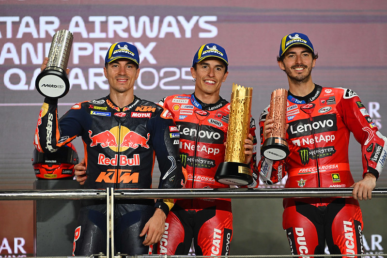 Il est difficile de ne pas évoquer le sujet après ce Grand Prix du Qatar ; au vu de vos réactions, je pense parler pour tout le monde, mais cela ne reste que mon avis, bien sûr. Cela fait deux fois, cette saison, que le déroulé d’une course est tronqué par cette question de pression, après la Thaïlande. Je vous le dis tout de suite : je n’ai pas de solution à ce problème. Cela ne m’empêchera pas de le pointer, et j’estime que c’est à Michelin et aux plus hautes instances d’y remédier.