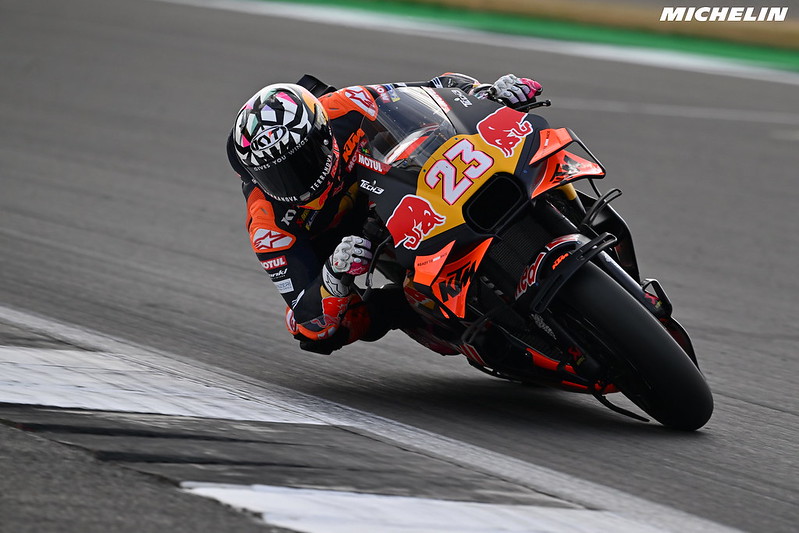 Même si je n’ai pas d’affinité particulière avec ce pilote, il faut reconnaître qu’il arrive chez KTM au pire moment ; oui, je crois qu’il a des circonstances atténuantes. Je ne vais pas m’étendre sur la question des concessions, car j’y ai déjà consacré un long article hier. Je vous invite d’ailleurs à le retrouver en cliquant ici. Mais il est clair que KTM et Aprilia ne sont pas franchement favorisés par ce système cette saison, surtout par rapport à Yamaha et Honda. Ensuite, il faut aussi rappeler l’ambiance morose chez KTM, qui, forcément, touche les pilotes. Je ne suis pas dans leur tête, mais je pense qu’entendre des rumeurs toutes les semaines concernant les finances de son employeur n’a rien de drôle, et n’aide pas à se projeter, à développer un véritable lien avec celui-ci.