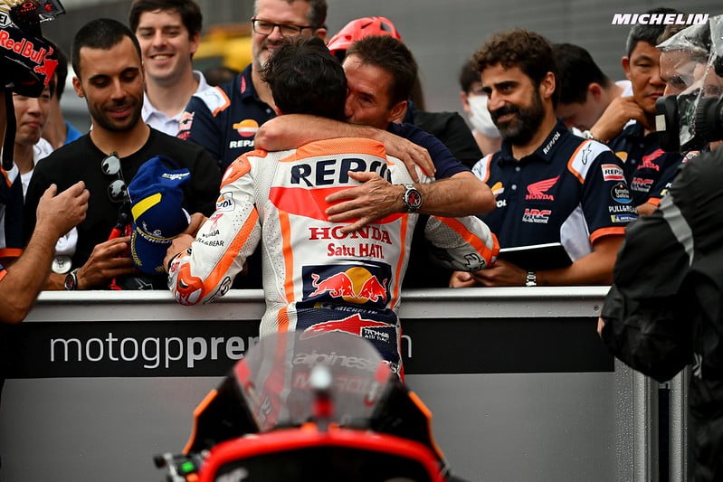 Quel est le rapport avec son retour ? En Thaïlande, un détail est passé inaperçu ; Márquez n’a pas préparé d’attaque sérieuse sur Bagnaia. Bien sûr, les conditions étaient dantesques mais l’Espagnol n’excelle-t-il pas dans ces circonstances ? Dans tous les cas, il usa de sagesse. « […] Je dois faire des courses comme celle-ci maintenant, même si j’aurais pu prendre plus de risques dans les cinq premiers tours. J’ai donc trouvé mon rythme et j’ai progressivement accéléré. ».