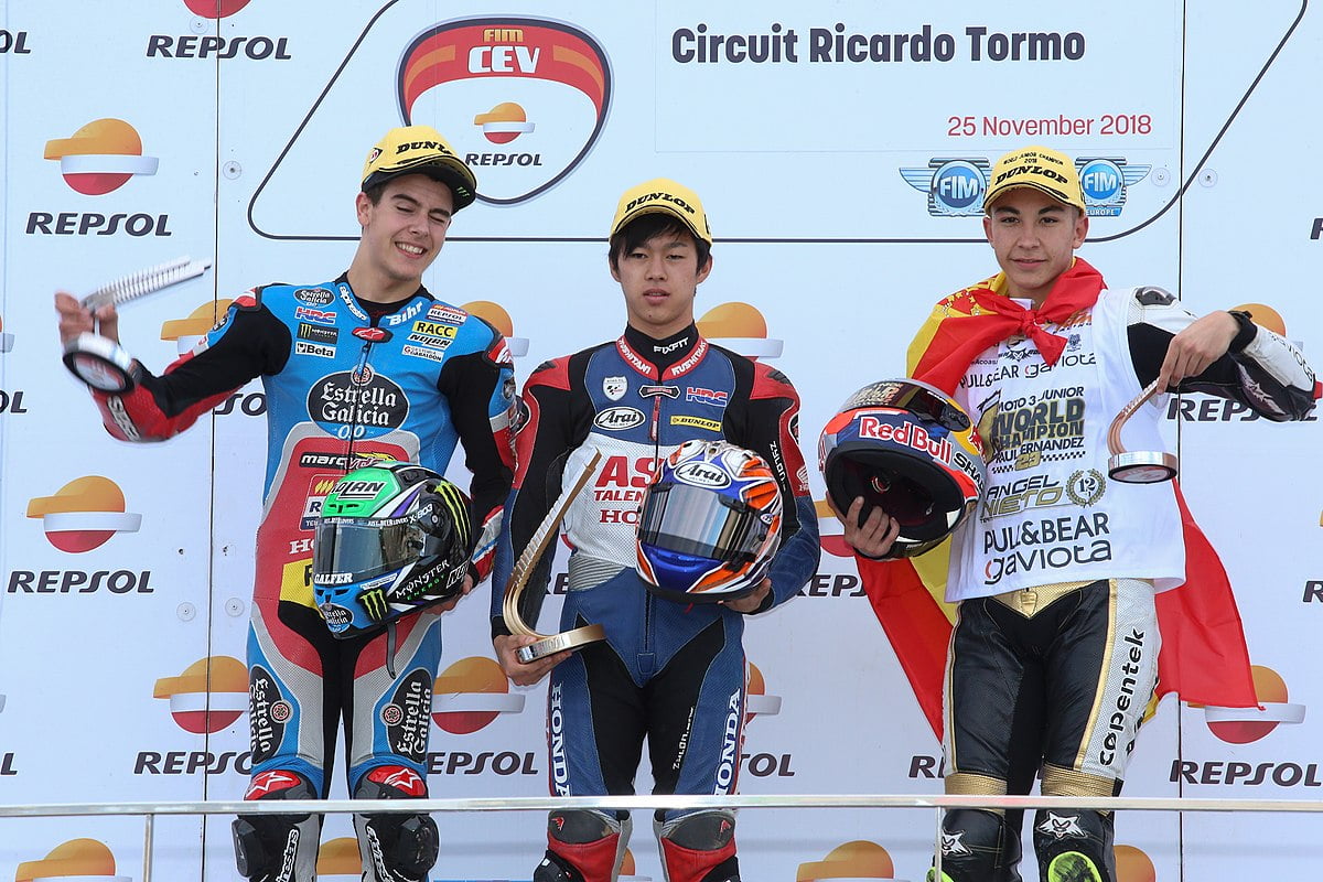 Sans oublier le meilleur tour en course, obtenu au Grand Prix de Styrie, ainsi qu’une belle deuxième place dans la roue de Raúl Fernández réalisée une semaine plus tard, toujours à Spielberg. Ai apprend diablement vite et a bien roulé au Qatar malgré une touchette sur Augusto Fernández dans le dernier virage. Seulement sixième à l’arrivée, cet accident de parcours pourrait rapidement se transformer en une première place, à condition que Celestino Vietti n’écrase pas toutes les manches.
