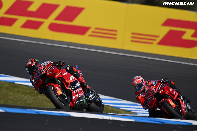 Ensuite, cet argument a été réfuté par Bagnaia, Marquez, Dall’Igna, et Tardozzi. Vous me direz peut-être qu’il s’agit là d’un simple axe de communication, mais Pecco a lui-même dit qu’il n’hésitait pas à demander des conseils à Marc, et que celui-ci lui en donnait volontiers. Pour avoir connu la rivalité Lorenzo/Rossi, croyez bien que ça ne ressemble pas du tout à une relation interne toxique.