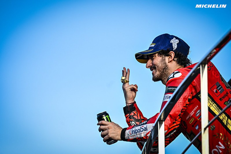 C’est fait ! Pecco Bagnaia est champion du monde MotoGP pour la deuxième fois consécutive ! Alors que cet exploit résonne autour du globe, tentons de nous pencher sur ce qu’il signifie aux yeux de l’histoire. L’Italien n’a pas seulement battu un pilote satellite pour s’adjuger son titre, il a réalisé une saison absolument fantastique. Analyse en plusieurs parties.