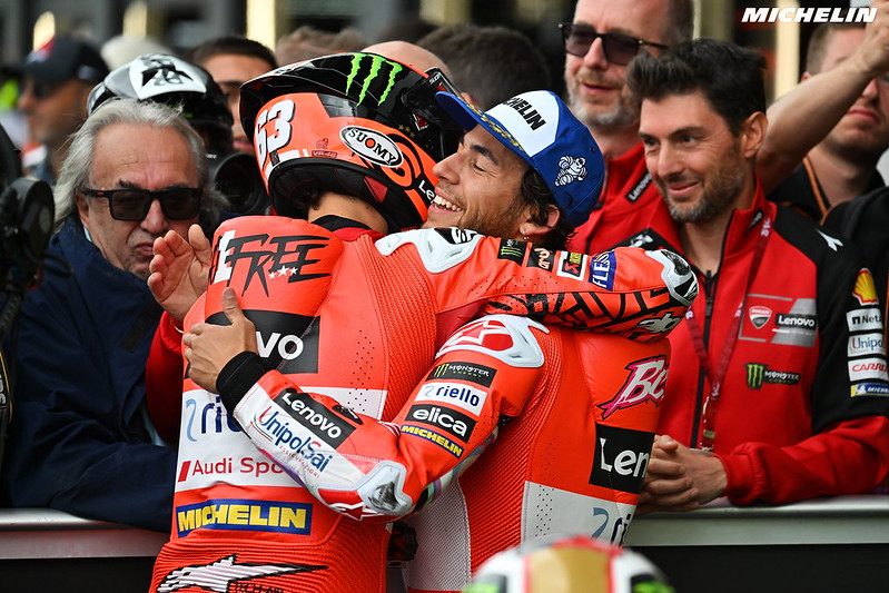 C’est en Grande-Bretagne qu’avait débuté sa stratégie de monter en puissance du vendredi au dimanche, en 2022 plus précisément. Pourtant, dès le début, il était dans le coup et cela s’est confirmé lors de la Practice comme en qualifications. Bagnaia a même failli réaliser la pole position ; il a fallu un espèce de concours de circonstances, et, bien sûr, un tour d’anthologie d’Aleix Espagraro pour l’empêcher de s’élancer premier.
