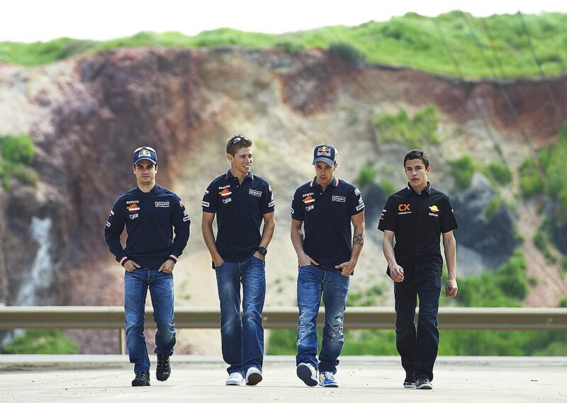 Le plus gros point commun entre les deux est le plus évident ; leur pays d’origine. Dans tous les sports, nous avons tendance à faire un rapprochement entre deux profils uniquement car ils sont nés dans la même contrée. Pas dans la même région cependant ; Marc Márquez, comme la large majorité des pilotes en Grands Prix, est un Catalan. Pedro Acosta, lui, est un pur Mazzaronero, de la région de Murcie, plus au Sud. Aussi limpide soit-il, cela constitue un argument valide dans le cadre de la comparaison. Il y a fort à parier que nous aurions entendu parler de « nouveau Rossi » s’il avait été italien. Autre facteur qui rejoint celui-ci, la filiation. Les deux sont des enfants de la traditionnelle formation espagnole, et l’on est habitué à voir Pedro Acosta avec KTM, Ajo et Red Bull comme nous étions habitués à voir Marc Márquez arborer les couleurs de Monlau, Repsol et Catalunya Caixa. Cela contribue à cette impression de « pilote d’usine avant l’heure » et constitue un autre marqueur visuel fort.