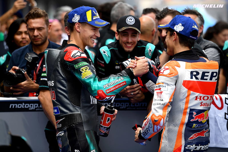 Nous sommes obligés de terminer par l’an 2019, absolument historique pour les jeunes loups. À vrai dire, il s’agit sans doute de la meilleure de toutes si l’on juge seulement le talent intrinsèque de chacun et que l’on établit une moyenne. À commencer par Miguel Oliveira, l’un des plus brillants de sa génération et qui compte déjà cinq victoires en MotoGP. Le champion du monde 2022 Francesco Bagnaia faisait lui aussi ses débuts chez Pramac, et il était difficile d’imaginer sa progression à l’époque. Joan Mir s’est aussi immiscé dans le classement, au 12e rang. Là encore, impossible de prévoir ce qui allait survenir un an plus tard. Fabio Quartararo complète ce millésime exceptionnel, à la seule différence que sa maestria s’est révélée bien plus tôt. Plus jeune poleman de l’histoire à Jerez, il croisait le fer avec Marc Márquez et affichait déjà le statut d’un grand.