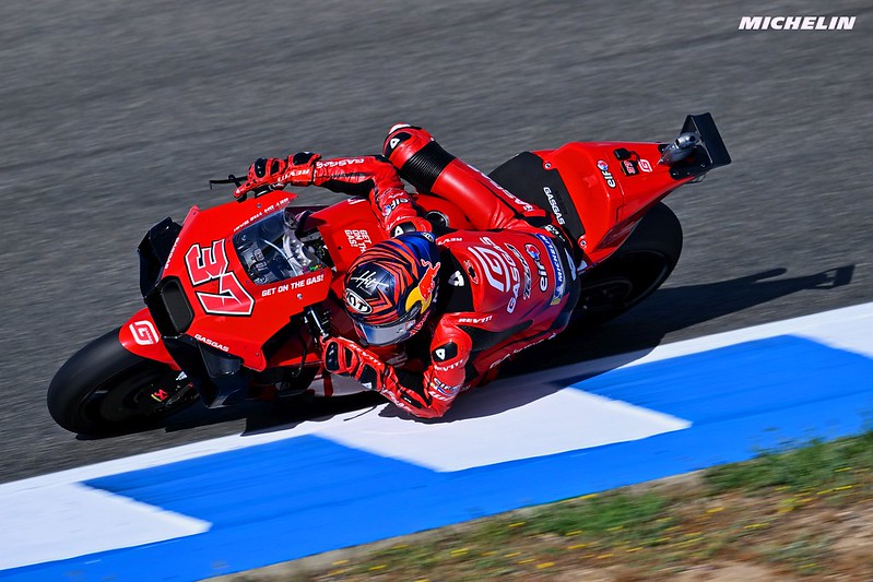 Premièrement, la KTM officielle s’est dotée d’un châssis en carbone qui a amélioré le feeling des pilotes, d’une part, et les performances, de l’autre. La GasGas Tech3, elle, non. Ainsi, ce team plus satellite qu’usine a quelque peu stagné. Mais ça, il n’y est pour rien. Rivaliser avec les Aprilia RS-GP23 qui progressaient et les huit Ducati devenait difficile.