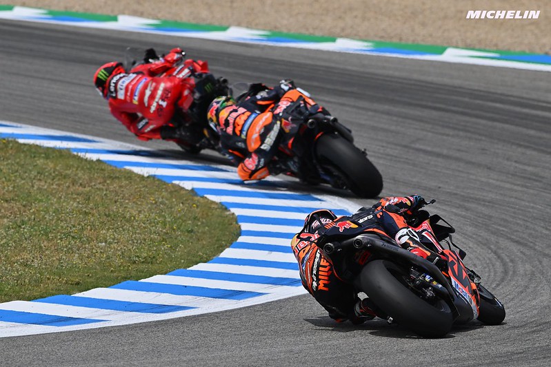 Entre le dépassement de Pecco sur Jorge Martin, la bataille avec les deux KTM et cette performance folle du champion du monde, il y avait de quoi écrire dessus pendant des heures. Brad Binder, héroïque et tout en travers, termina deuxième. Jack Miller, lui, signa ici sa plus belle réalisation de la saison.
