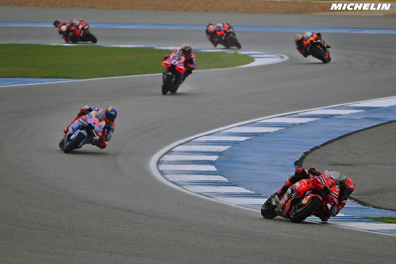 It's the same again, @PeccoBagnaia fends off @marcmarquez93 once more! #ThaiGP 🇹🇭 pic.twitter.com/X1fZeVg0ch