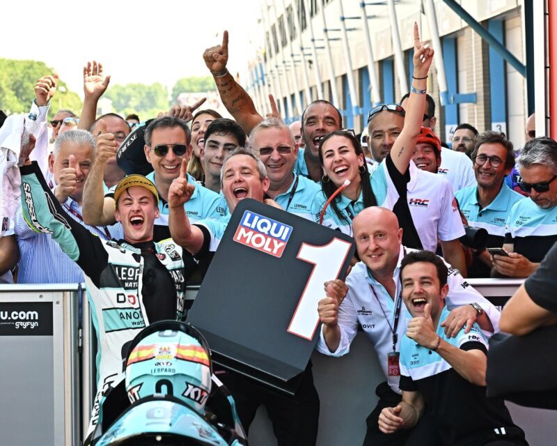 Depuis le début de saison 2023, il est de retour avec Leopard Racing, des 250cc quatre-temps reconnaissables grâce à leur robe cyan, beaucoup plus claires que l’origine du sponsor, une boisson énergisante que personne, ou presque, n’a jamais eu l’occasion de goûter. Toujours est-il que la formation a déjà couronné trois champions du monde depuis 2012, à savoir Danny Kent en 2015, Joan Mir en 2017 et Lorenzo Dalla Porta en 2019.