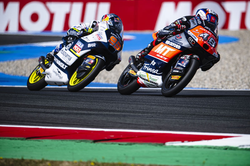 Pour les courses des Championnats du Monde Moto2™ et Moto3™ qui se sont déroulées dimanche sur le circuit TT Assen en Hollande, Ai Ogura (MT Helmets-MSI/Boscoscuro) et Ivan Ortolá (MT Helmets-MSI/KTM) se sont respectivement imposés avec de nouveaux records du tour en course établis par Sergio Garcia (MT Helmets-MSI/Boscoscuro) en Moto2™ et Adrian Fernandez (Leopard Racing/Honda) en Moto3™. Les pneus Pirelli standard se sont extrêmement bien comportés, permettant de battre tous les records du circuit pour les deux catégories, y compris le record du tour de tous les temps, contribuant également de manière significative à l’amélioration des temps de course et du rythme global.