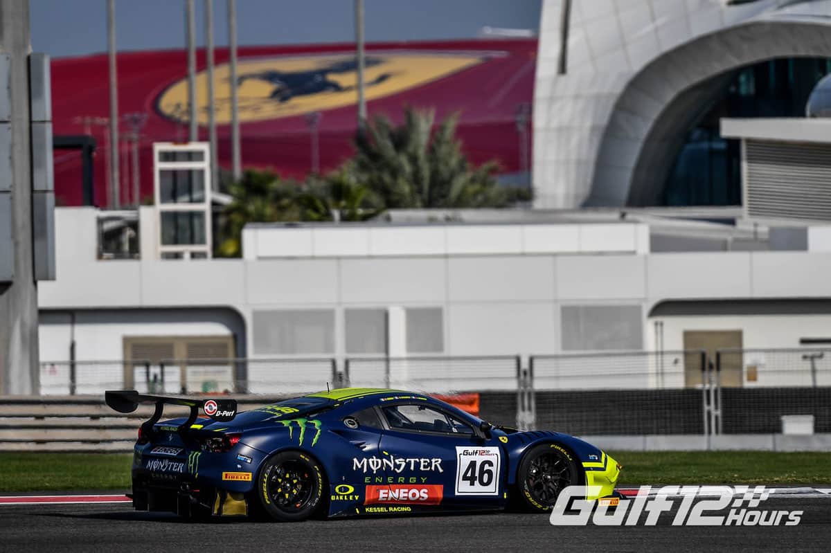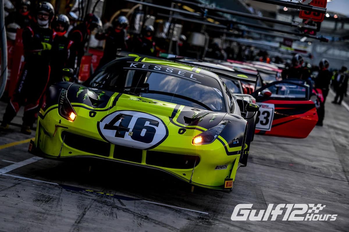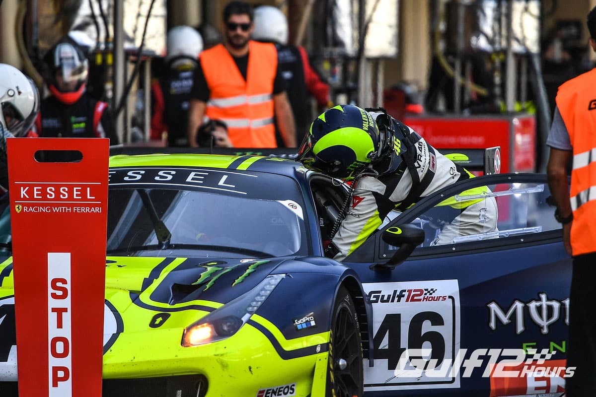 L’expérience menée par Valentino Rossi aux Gulf 12 Hours, sur le circuit de Yas Marina aux Émirats Arabes Unis, comportait deux caractéristiques pas forcément évidentes à concilier : elle était d’une part abordée très professionnellement, avec une Ferrari 488 GT3 très bien préparée par le team Kessel Racing puis un entraînement en octobre à Misano, mais elle était d’autre part placée sous le signe de la famille, avec son frère Luca Marini et son meilleur ami Alessio Salucci (dit Uccio) comme copilotes.