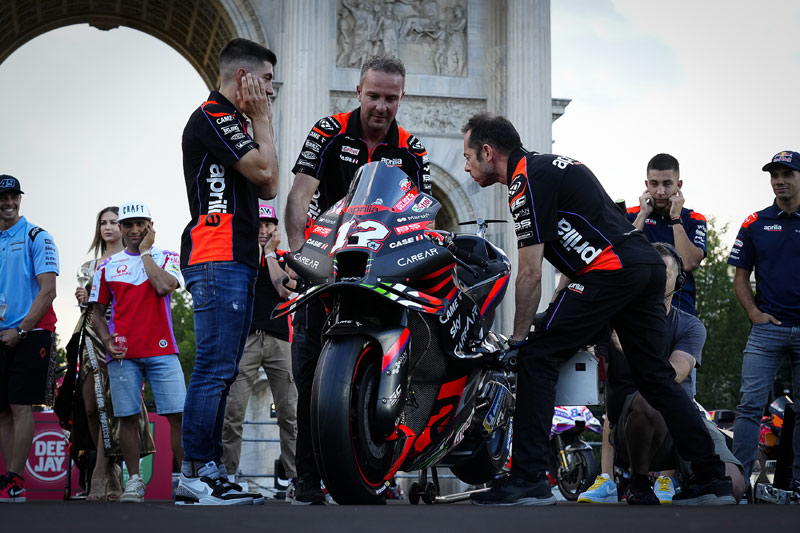 Animé par Guido Meda de Sky Italie, partenaire de diffusion du MotoGP™, et Linus, directeur artistique de Radio Deejay, le public a pu voir, et pour beaucoup rencontrer, Pecco Bagnaia & Enea Bastianini (Ducati Lenovo Team), Marco Bezzecchi & Luca Marini (Mooney VR46 Racing Team), Maverick Viñales, Aleix Espargaro & Lorenzo Savadori (Aprilia Racing), Jorge Martin (Prima Pramac Racing), Franco Morbidelli (Monster Energy Yamaha MotoGP™), Miguel Oliveira & Raul Fernandez (CryptoData RNF MotoGP™ Team), Fabio Di Giannantonio (Gresini Racing MotoGP™) et Luca Salvadori (Prettl Pramac MotoE™).