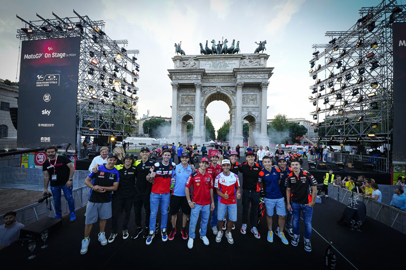 Animé par Guido Meda de Sky Italie, partenaire de diffusion du MotoGP™, et Linus, directeur artistique de Radio Deejay, le public a pu voir, et pour beaucoup rencontrer, Pecco Bagnaia & Enea Bastianini (Ducati Lenovo Team), Marco Bezzecchi & Luca Marini (Mooney VR46 Racing Team), Maverick Viñales, Aleix Espargaro & Lorenzo Savadori (Aprilia Racing), Jorge Martin (Prima Pramac Racing), Franco Morbidelli (Monster Energy Yamaha MotoGP™), Miguel Oliveira & Raul Fernandez (CryptoData RNF MotoGP™ Team), Fabio Di Giannantonio (Gresini Racing MotoGP™) et Luca Salvadori (Prettl Pramac MotoE™).