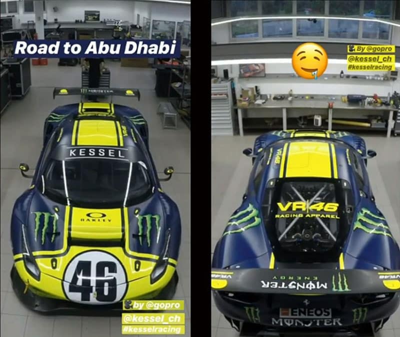 Moins d’une semaine plus tard, le 14 décembre, Valentino Rossi retrouvera cette fois dans le grand bain de la compétition au volant d’une Ferrari 488 GT3 du team Kessel Racing pour participer aux 12 Heures du Golfe, sur le circuit Yas Marina à Abu Dhabi.