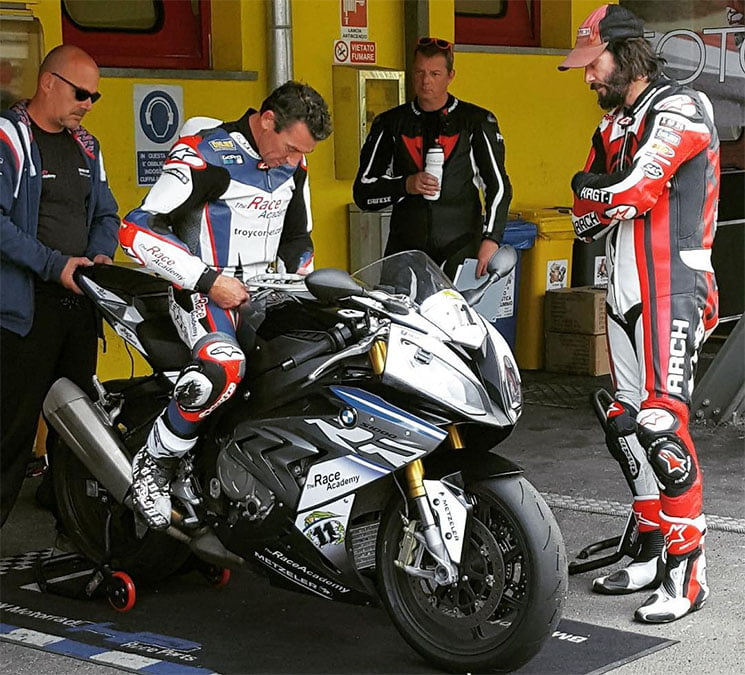 Le week-end dernier, invité par le constructeur helvète Eskil Suter à l’occasion d’essais privés de la Moto2 et de la MMX500 de 195 chevaux sur le circuit du Mugello, l’acteur canadien a également pu profiter des conseils de Troy Corser, présent sur le circuit italien pour animer un stage « The Race Academy » pour BMW Motorrad.